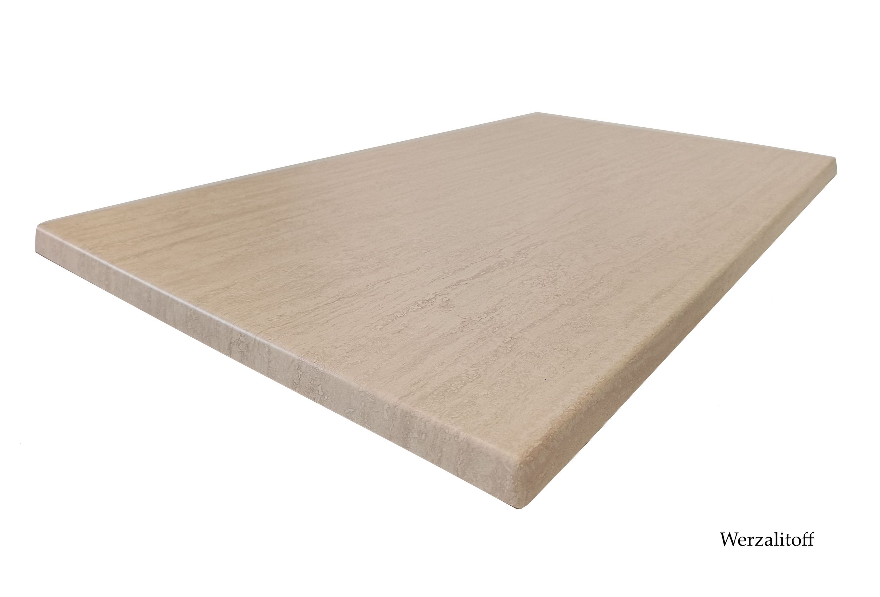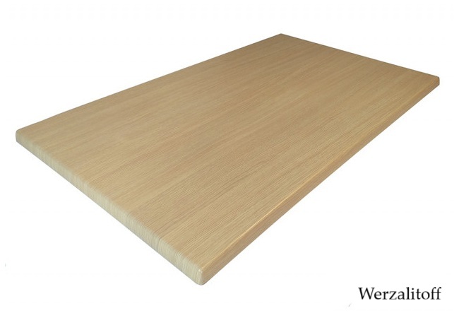 Столешницы Werzalit имеют высокую устойчивость к механическим повреждениям, воздействию влаги и УФ излучения. Преимуществом столешниц верзалит является то, что их можно использовать в помещениях и на улице на открытом воздухе. Столешницы из верзалита формованные. поэтому отсутствуют швы, поверхность столешницы плавно переходит в край. Столешницы устойчивы к царапинам, к химическим средствам, в том числе хлоросодержащим, сигареты не оставляют следов на столешнице, столешницы не портятся от воды. Водонепроницаемая поверхность столешниц делает их пригодными для использования на открытом воздухе, обеспечивая более длительный срок службы на открытом воздухе, чем обычные деревянные столешницы. Благодаря закругленным краям из соображений безопасности и разнообразию размеров, форм и цветов столешницы werzalit подойдут к любому интерьеру.