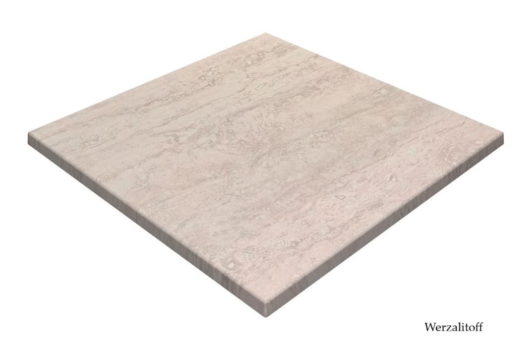 Столешница werzalit квадратная для кафе, бара, фудкорта, кофейни, ресторана, террасы, веранды, фудкорта, пиццерии, отеля, офиса, столовой, гостиной и кухни. Столешница из плиты ДСП с пластиковым покрытием декор травертин. Поверхность столешницы покрыта пластиком методом горячего прессования. Формованная монолитная столешница без швов и кромок. Столешницы подходят для чугунных подстолий, хромированных подстолий, подстолий из нержавейки, золотых подстолий из нитрида титана, металлических подстолий, алюминиевых подстолий. Столешница квадратная для обеденного и кофейного стола размер 70х70 см.
